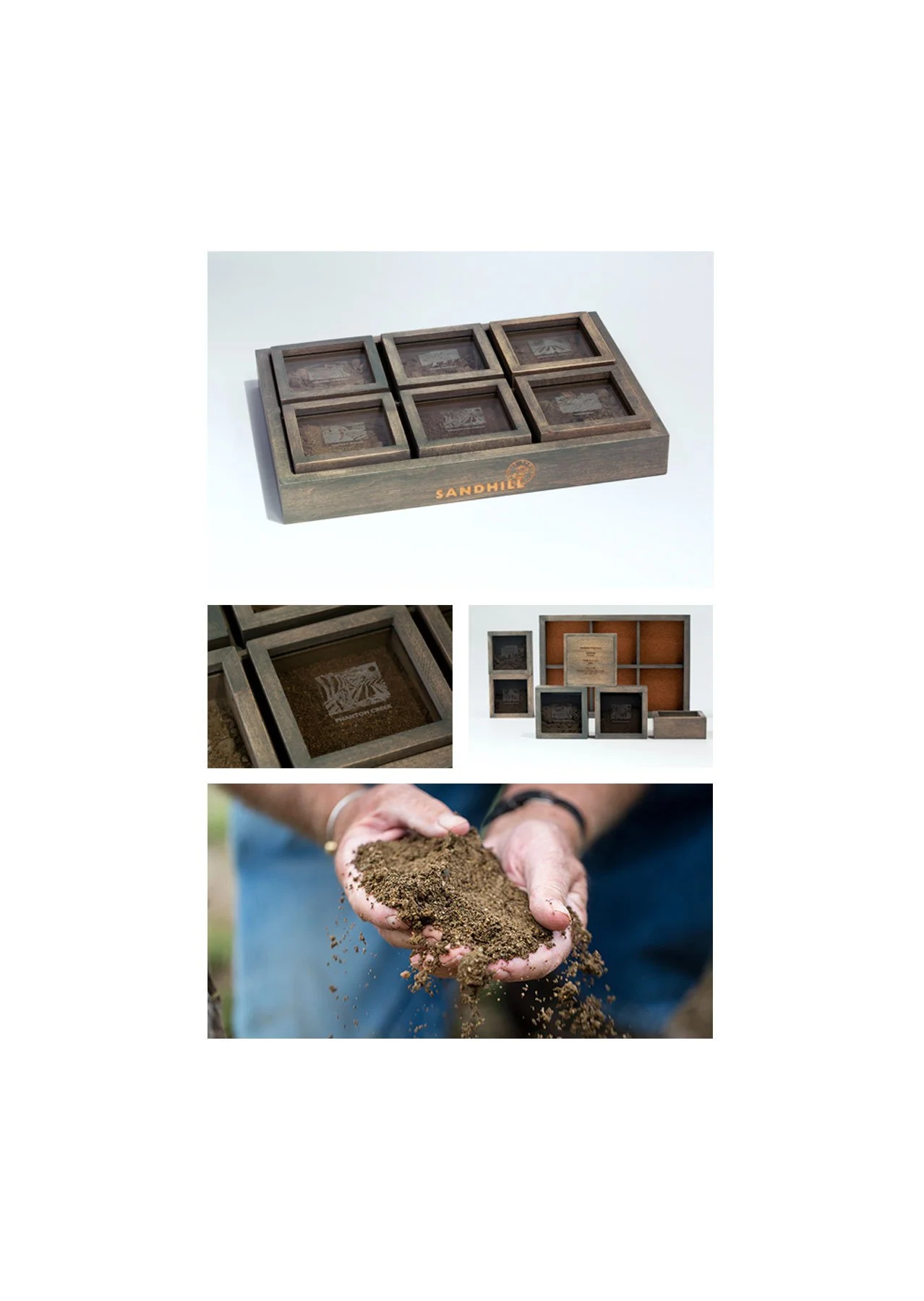 This project also included a ‘bonus brief’ - To create a fun interactive teaching aid to help Sandhill educate people in their tasting rooms or at events. The solution I came up with was to build a series of boxes that held the unique soil compositions from their six vineyards.
